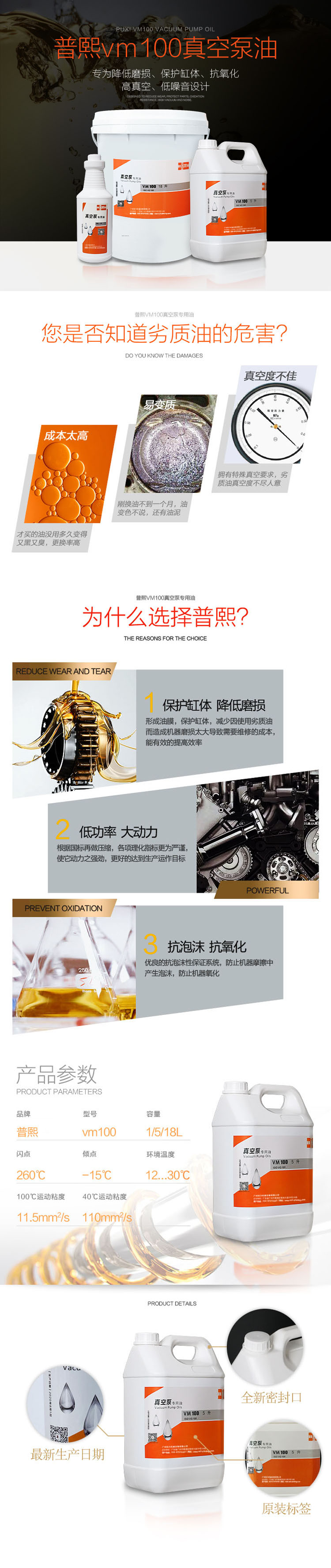 普熙VM100真空泵油專用油VG100旋片式真空泵油